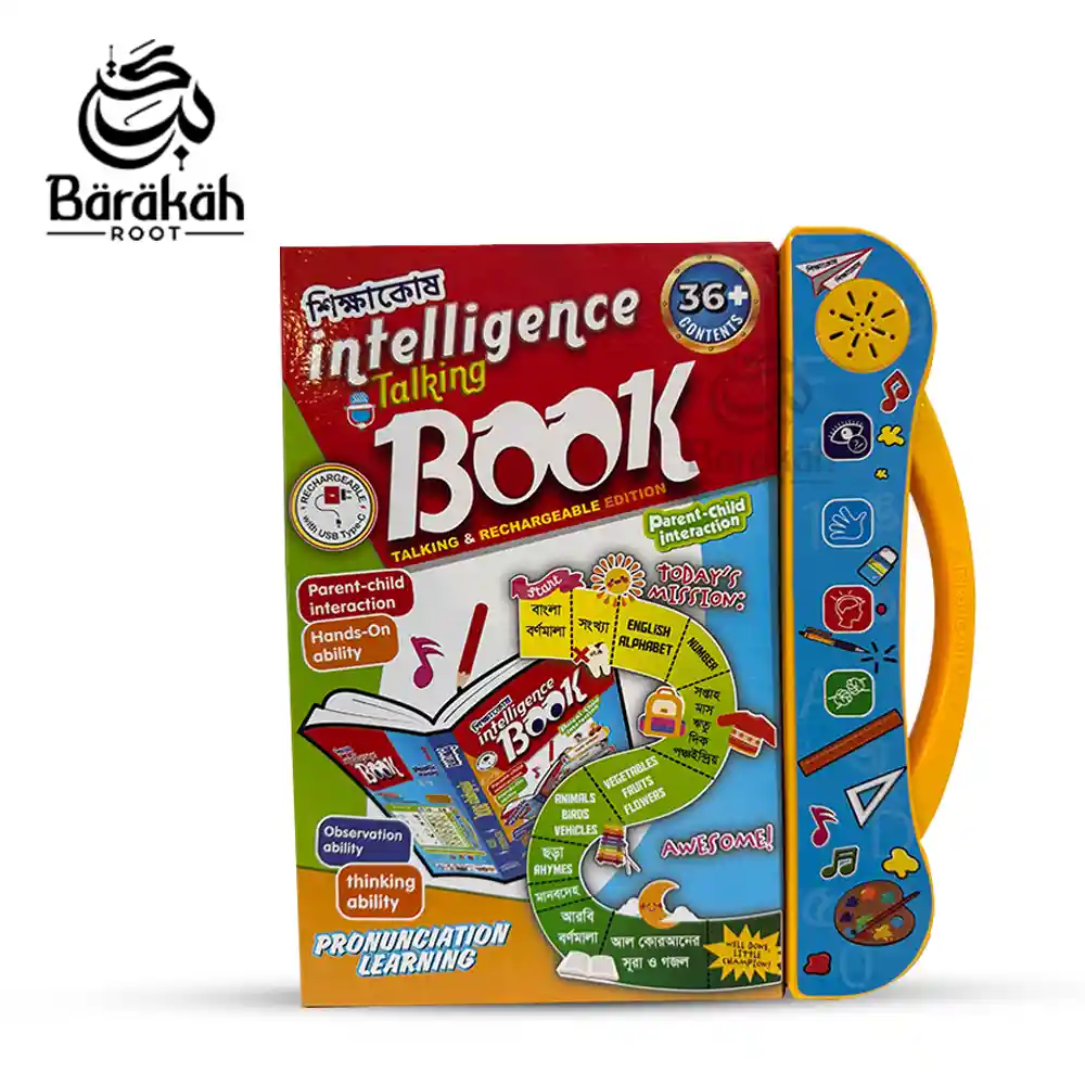 শিক্ষাকোষ ইন্টেলিজেন্স টকিং বুক (রিচার্জেবল সংস্করণ) হলো শিশুদের জন্য এক অসাধারণ শিক্ষণীয় বই যেখানে রয়েছে ৩৬টিরও বেশি বিষয়, ৩২টি রঙিন পৃষ্ঠা, আর বাংলা, ইংরেজি ও আরবি ভাষায় শেখার সুযোগ।